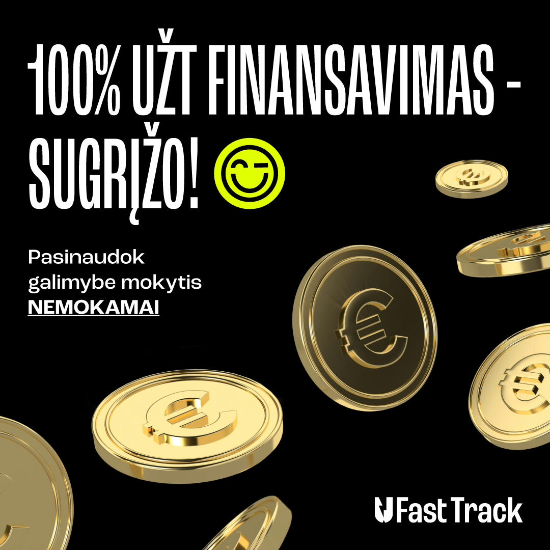 FastTrack akademijoje suteikiame kursams reikalingą programinę įrangą (pavyzdžiui, „Microsoft Office“ online paketas ir kt.), tačiau už techninę įrangą atsakingas pats kursų dalyvis. Tačiau, jei tai vienintelė problema, stabdanti tave nuo naujos karjeros pradžios, susisiek su mumis ir mes pasistengsime tau padėti.